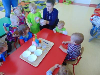 Masa mydlana „Mydło lubi zabawę”- nasze Maluszki też bardzo lubią zabawę, a zajęcia o czystych rączkach były do tego wspaniałą okazją. Dzieci wykonywały eksperymenty z wodą, jak również ugniatały masę mydlaną łącząc mąkę ziemniaczaną z kolorowym mydłem w płynie....