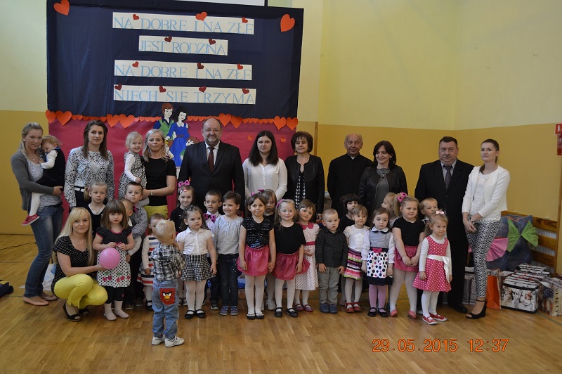 29.05.2015r. w Klubie Dziecięcym "Kubusiowy Raj" w Lelicach, po raz drugi odbył się Dzień Rodziny, na który licznie przybyli rodzice naszych pociech, aby razem świetować Dzień Mamy, Dzień Taty, Dzień Dziecka. Swoją obecnością zaszczycili nas zaproszeni goście, współpracujący zawsze z naszą placówką: Wójt Gminy Gozdowo- Pan Dariusz Kalkowski, Ksiądz kanonik Franciszek Kuć, Przewodniczący Rady Gminy- Pan Grzegorz Ratkowski, Kierownik Referatu Oświaty- Pani Jolanta Lewandowska, Dyrektor Szkoły Podstawowej w Lelicach- Pani Jadwiga Paradowska.