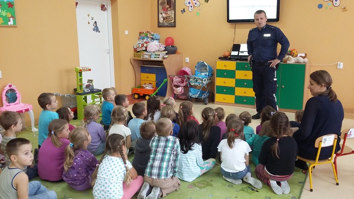 W czwartek 15 października 2015r. Klub Dziecięcy “Kubusiowy Raj” w Lelicach odwiedził st. sierż. Marek Zdziebłowski. Podczas spotkania Maluchy dowiedziały się jak ważna i odpowiedzialna jest jego praca, jakie są zasady uczestnictwa w ruchu drogowym, jak zachować się w stosunku do nieznajomych, jak bezpiecznie spędzać czas w domu oraz co robić, gdy grozi niebezpieczeństwo.
