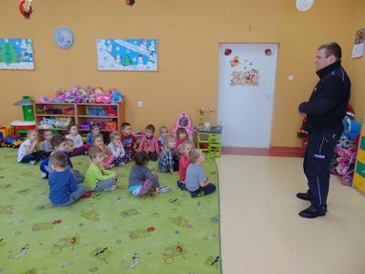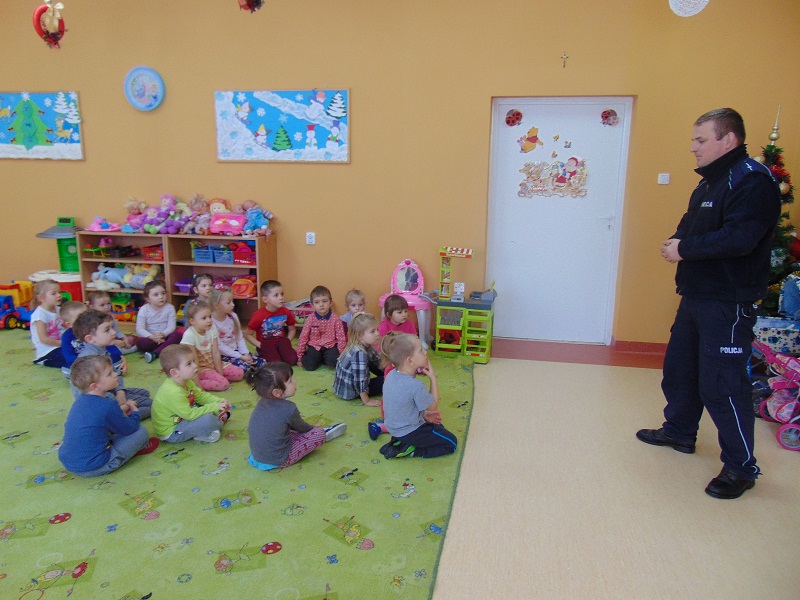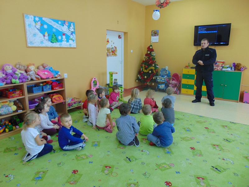Policjant po raz kolejny omówił zasady zachowania się podczas nieobecności rodziców w domu, jak róznież przestrzegał dzieci przed kontaktami z osobami nieznajomymi. Na zakończenie życzył dzieciom spokojnych, a przede wszystkim bezpiecznych ferii zimowych.