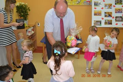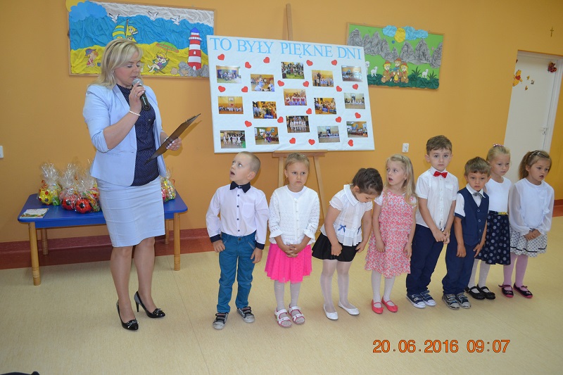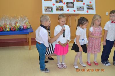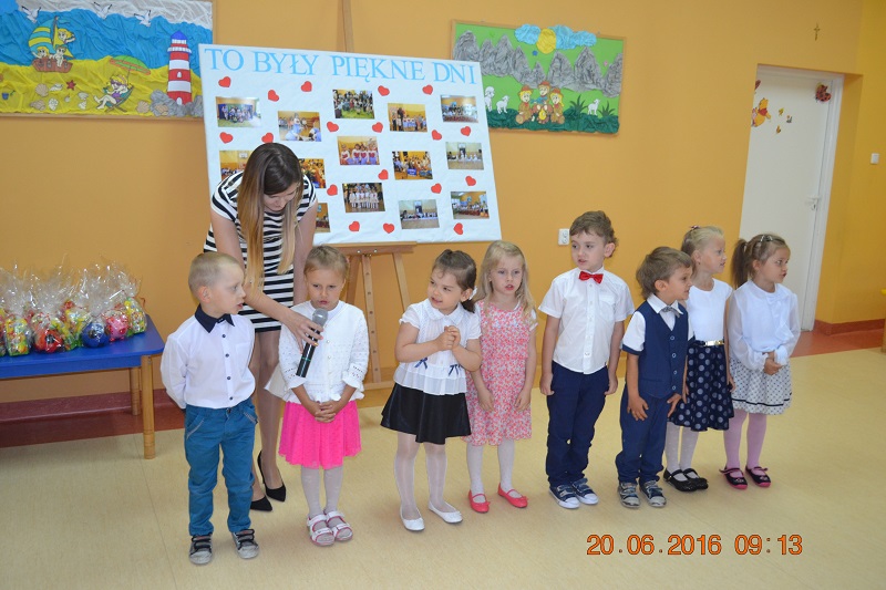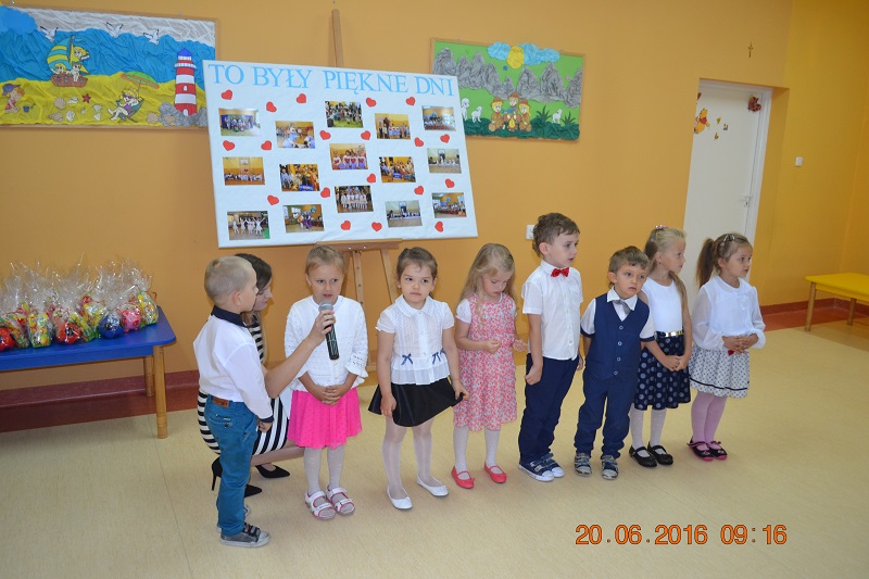 20 czerwaca 2016 r. o godzinie 9.00 rozpoczęło się uroczyste zakończenie roku w Klubie Dziecięcym „Kubusiowy Raj” w Lelicach. Byli z nami zaproszeni goście: Wójt Gminy Gozdowo- Pan Dariusz Kalkowski, Ksiądz kanonik Franciszek Kuć, Przewodniczący Rady Gminy- Pan Grzegorz Ratkowski, Kierownik Referatu Oświaty – Pani Jolanta Lewandowska, Dyrektor Szkoły Podstawowej w Lelicach- Pani Jadwiga Paradowska, Kierownik Klubu Dziecięcego „Kubusiowy Raj” w Lelicsach – Pani Monika Spychała. W tym uroczystym dniu byli obecni Rodzice, Panie Opiekunki, Pracownicy Obsługi oraz Kuchni.