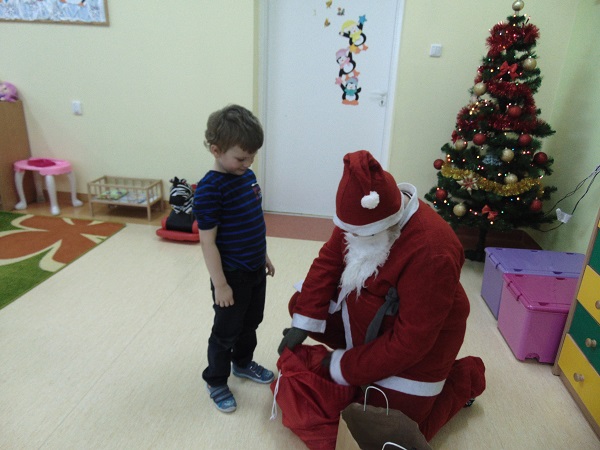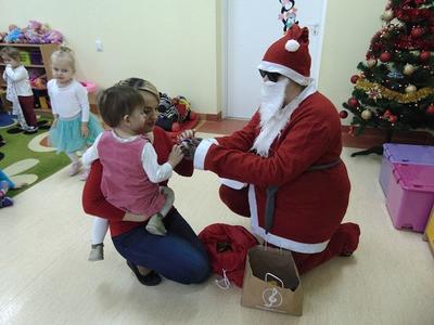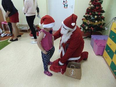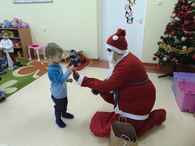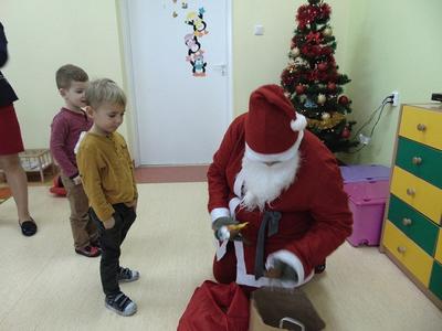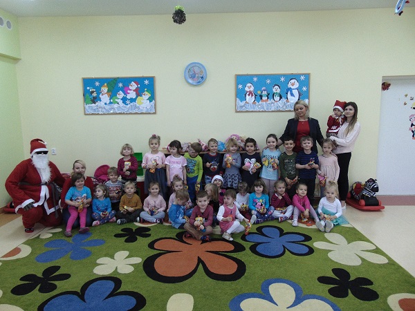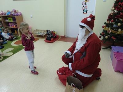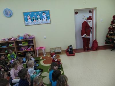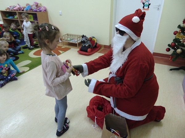 Zapach przyprowadził do nas wspaniałego gościa św. Mikołaja. Wszystkie dzieci bardzo przeżywały to spotkanie. Na niejednej twarzyczce można było zobaczyć niepewność, obawę, a nawet łezki w oczkach. Trwało to jednak krótko. Maluszki dzielnie recytowały wierszyki, opowiadały o zabawach w Klubie i oczywiście chwaliły się bardzo, że są grzeczne. Mikołaj wręczył każdemu dziecku drobny upominek i musiał się pożegnać, ponieważ czekały na niego jeszcze inne dzieci.