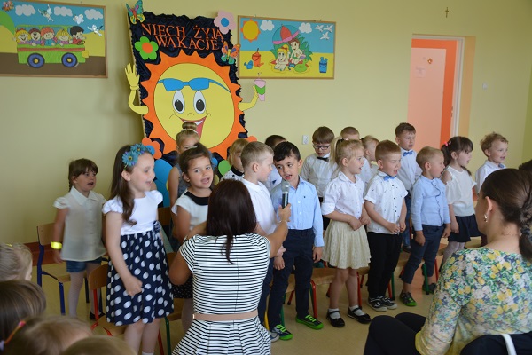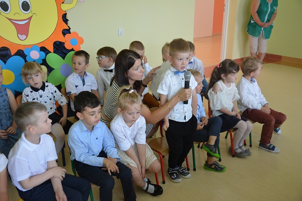 Starszaki, które po wakacjach idą do szkoły żegnały Klub Dziecięcy, a młodsze dzieci pożegnały swych starszych kolegów i koleżanki. Dzieci zaprezentowały program artystyczny, pięknie recytowały wiersze i śpiewały piosenki. W przygotowanie uroczystości mali artyści włożyli wiele pracy, a zaproszeni goście i rodzice docenili ich gromkimi brawami. Na zakończenie uroczystości dzieci otrzymały dyplomy i upominki za włączanie się w akcje zbiórki makulatury oraz zbiórki nakrętek.