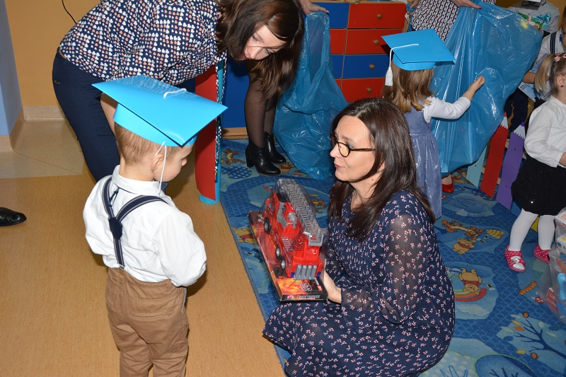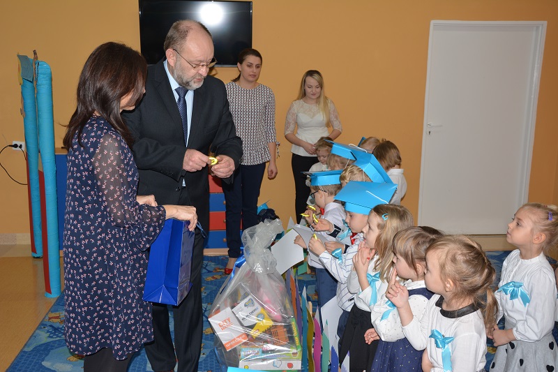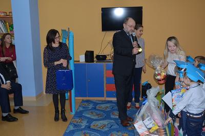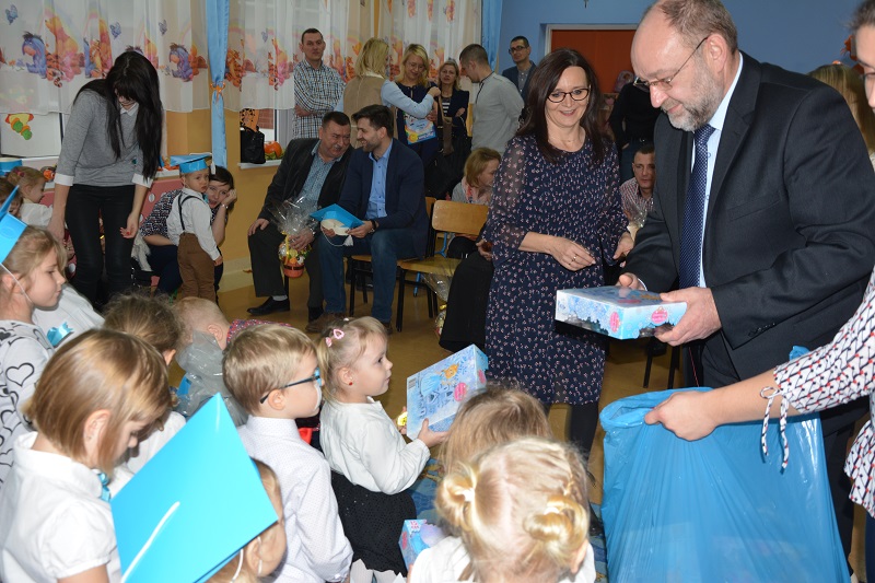 Jednakże tego dnia prezentów nie było końca, Wójt Gminy Gozdowo Pan Dariusz Kalkowski podarował dzieciom z okazji pasowania jak również zbliżających się Mikołajek ogromny worek kolorowych zabawek, z których dzieci bardzo się ucieszyły.