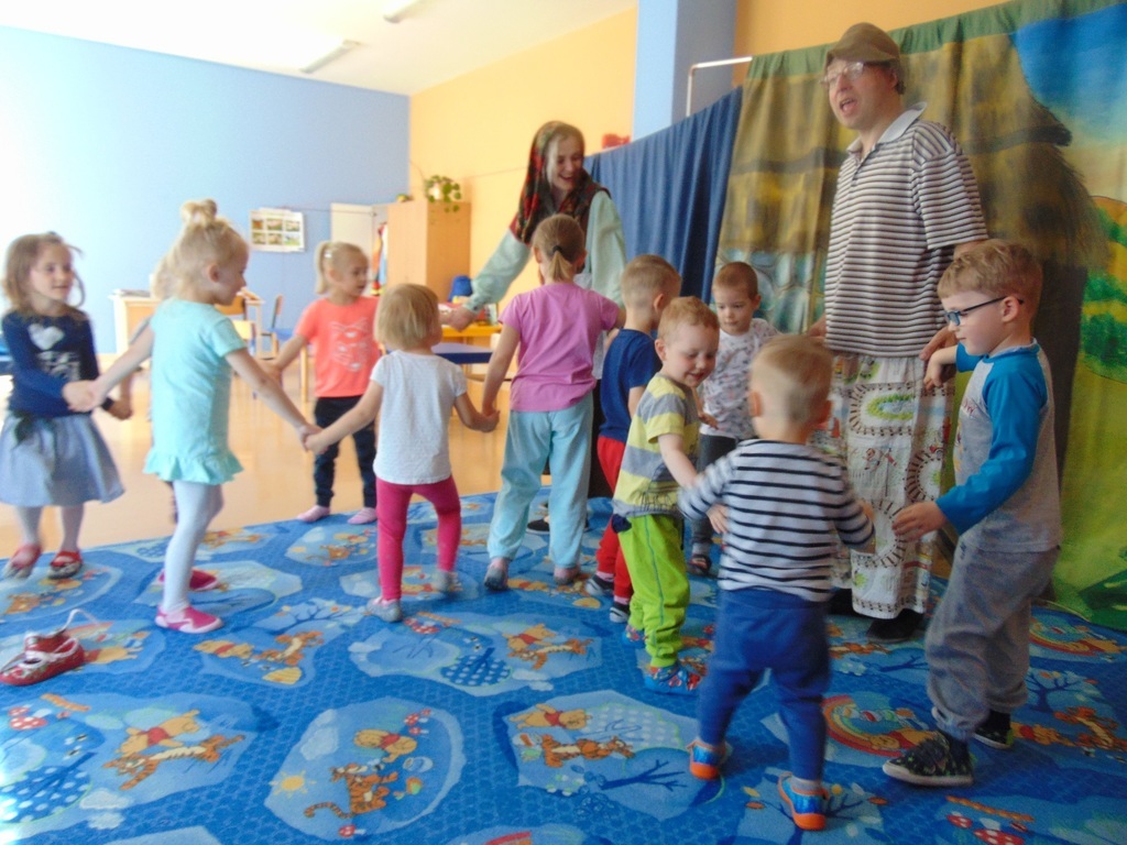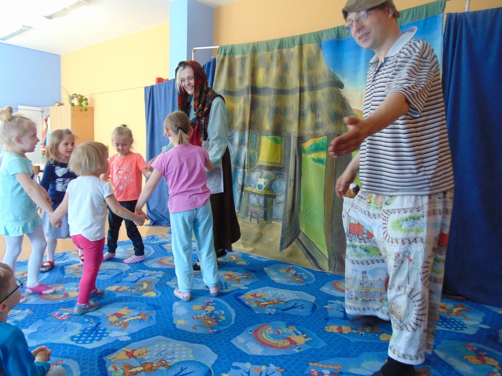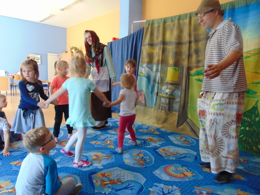 21 marca 2018 r. Studio Małych Form Teatralnych ART-RE z Krakowa przedstawiło naszym dzieciom spektakl pod tytułem „Jaś i drzewo fasolowe”. Bajka zrealizowana na podstawie znanej angielskiej baśni. Jaś rusza na targ sprzedać krowę. Spotkana na targu zielarka w zamian za Krasulę daje mu ziarna zaczarowanej fasoli, które Jaś ma zakopać w ziemi. Fasola zaczyna rosnąć, sięga chmur. Zaciekawiony chłopiec postanawia wspiąć się na nią. Tam spotyka Panią Olbrzym, która chcąc pomóc Jasiowi, w prezencie daje mu kurę znoszącą złote jajka oraz zaczarowany flet.