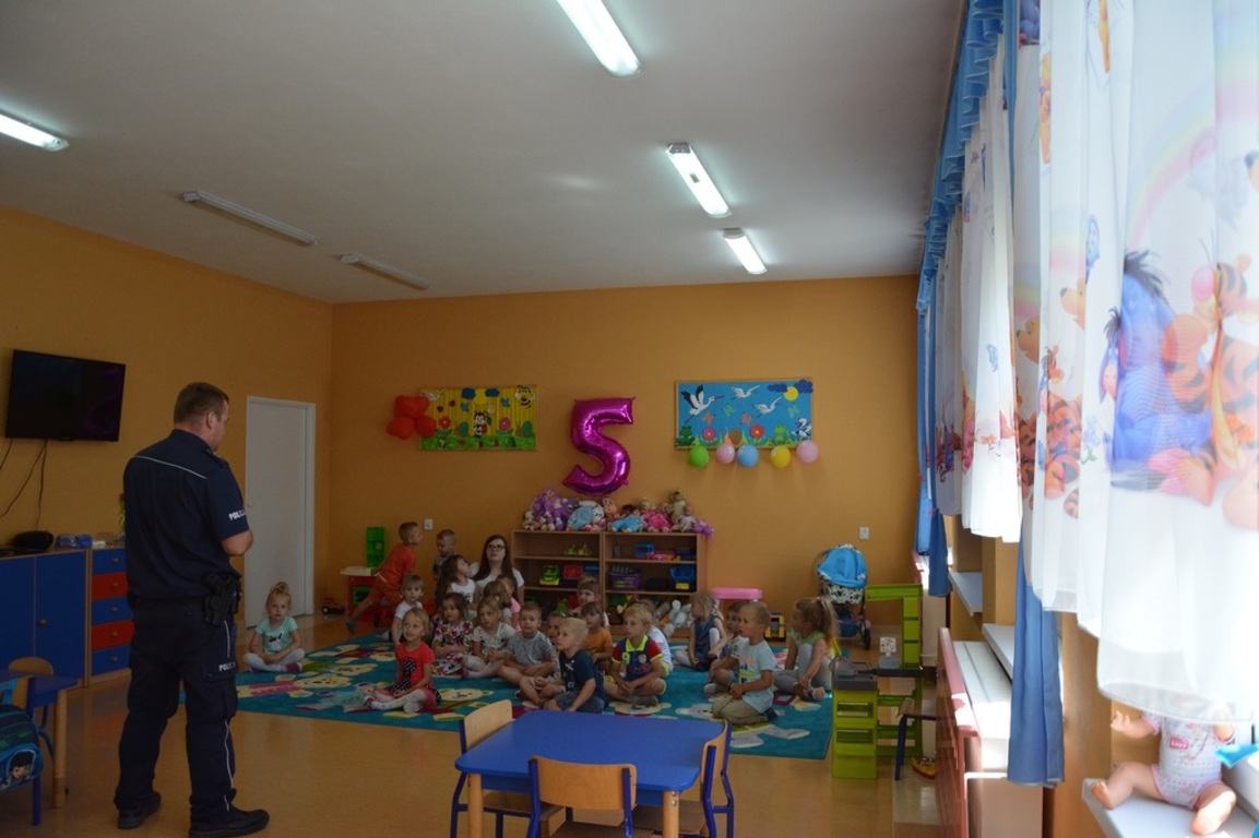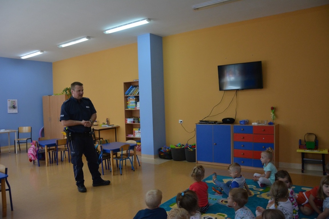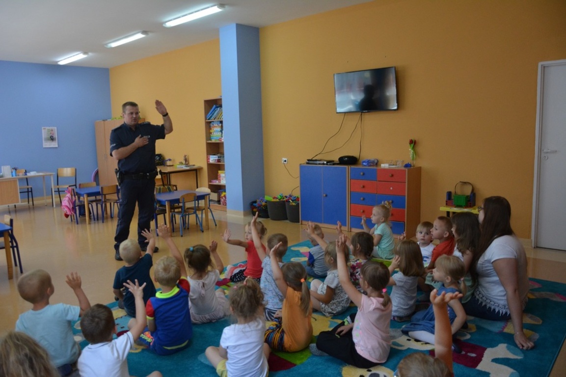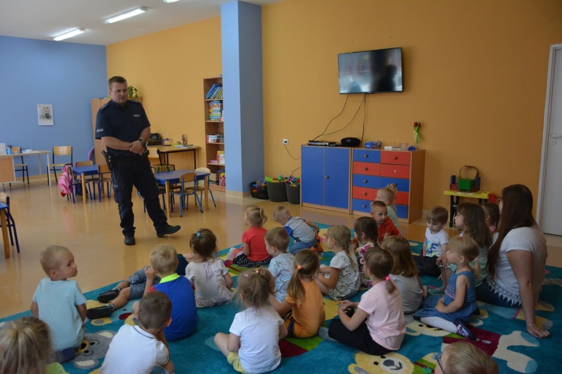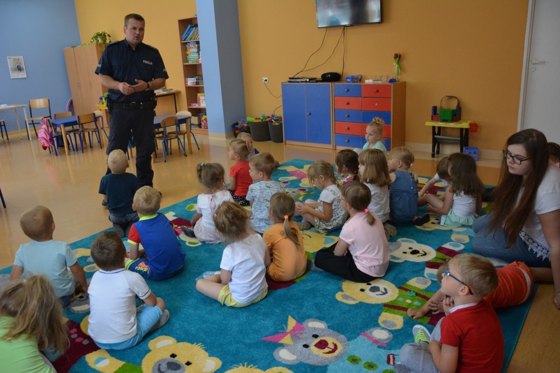 Dnia 08.06.2018r. Klub Dziecięcy „Kubusiowy Raj” w Lelicach odwiedził st. sierż. Marek Zdziebłowski. Tematem spotkania było utrwalenie z dziećmi zasad ruchu drogowego oraz przypomnienie zagadnień dotyczących bezpieczeństwa dzieci w Klubie i w domu podczas wakacji. Pan policjant, w formie praktycznej, przypomniał podstawowe zasady zachowania się podczas przechodzenia przez jezdnię. Następnie wytłumaczył jak należy zachować się w kontaktach z obcymi ludźmi, jak dbać o bezpieczeństwo własne i innych oraz do kogo zwracać się o pomoc w sytuacji zagrożenia. Dzieci z dużym zainteresowaniem słuchały rad i wskazówek zaproszonego gościa. Dziękujemy za pouczające spotkanie.