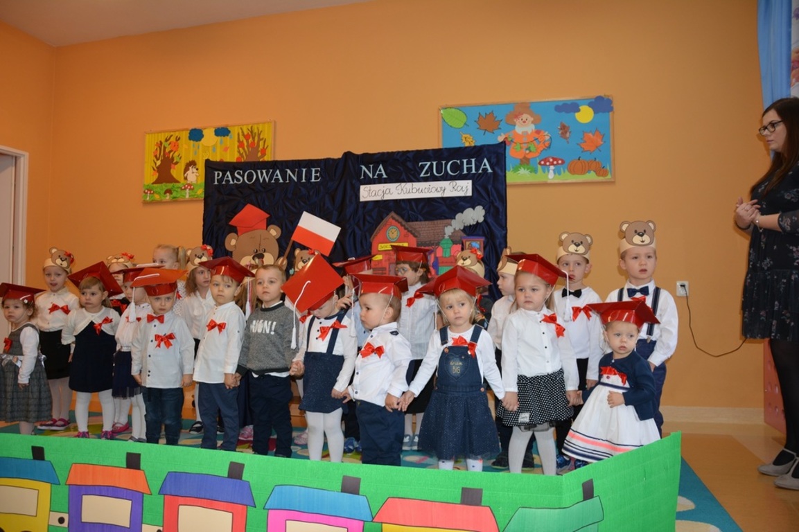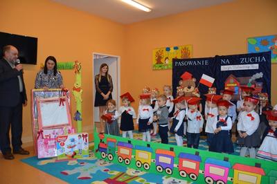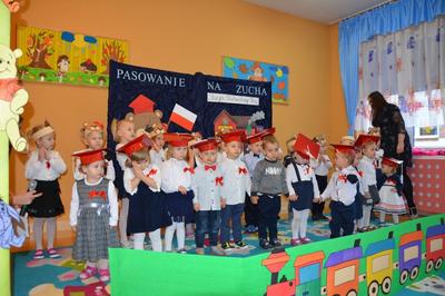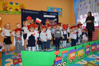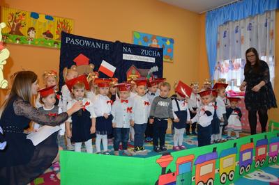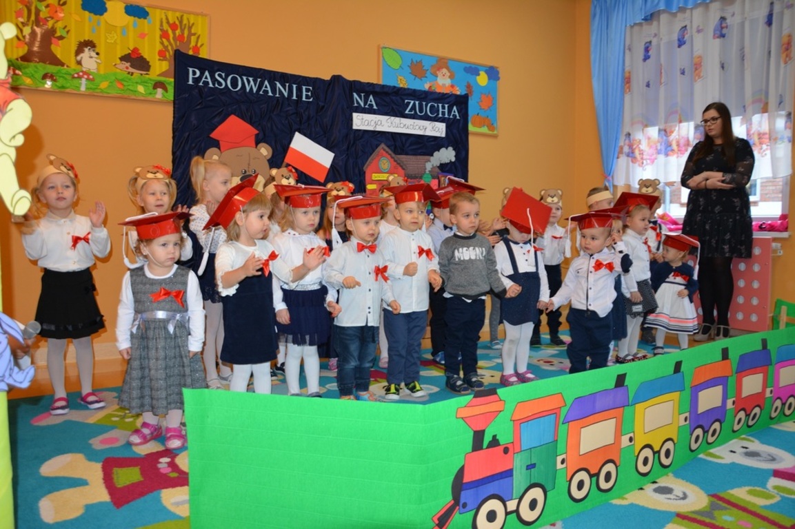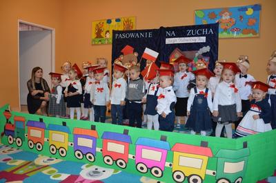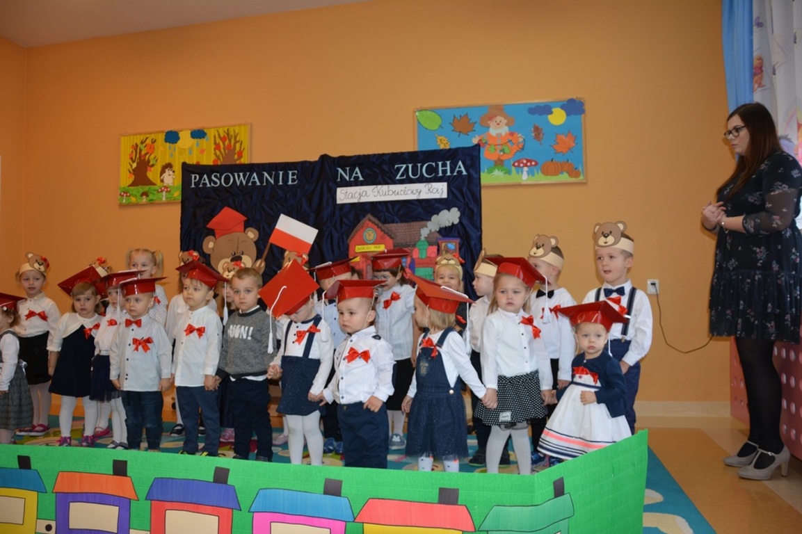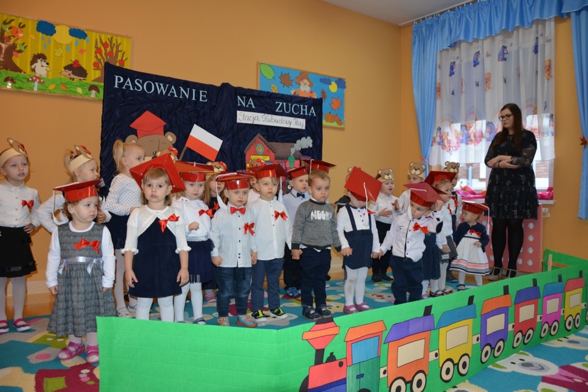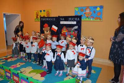 Pasowanie Malucha na Zucha, które odbyło się 29.11.2018 r., miało bardzo szczególny charakter. Program artystyczny oraz zachwycająca dekoracja zostały przygotowane pod kątem 100 rocznicy odzyskania przez Polskę niepodległości. Tego dnia byli z nami goście, którzy wspierają naszą placówkę, Wójt Gminy Gozdowo- Pan Dariusz Kalkowski, Proboszcz Parafii Bonisław- ks. kan Franciszek Kuć, Kierownik Referatu Oświaty- Pani Jolanta Lewandowska, Dyrektor Szkoły Podstawowej w Lelicach- Pan Krzysztof Jóźwiak. Uroczystość rozpoczęła się od powitania gości i przedstawienia krótkiej części artystycznej, w której maluszki zaprezentowały swoje umiejętności – dając tym samym dowód, jak dużo już potrafią. Były więc piosenki, wierszyki, zabawy ruchowe. Po części artystycznej, dzieci obiecały: zgodnie bawić się w sali, przychodzić każdego dnia z uśmiechem, słuchać pań i pomagać kolegom, być zuchem. Następnie pani kierownik Monika Spychała dokonała uroczystego pasowania każdego dziecka na zucha. Na pamiątkę tego ważnego wydarzenia każde dziecko otrzymało dyplomik pasowania, oraz prezent. Następnie wszyscy udali się na słodki poczęstunek, który przygotowali rodzice, za co jesteśmy im wdzięczni.