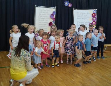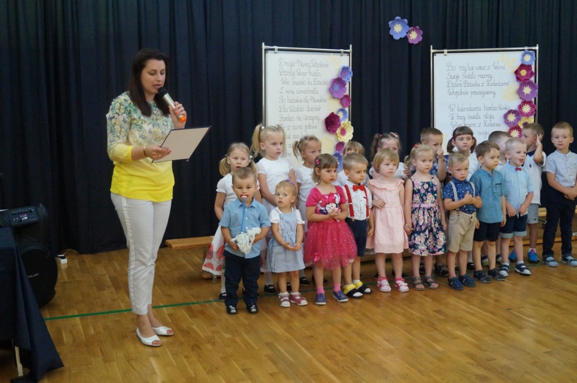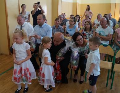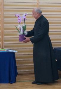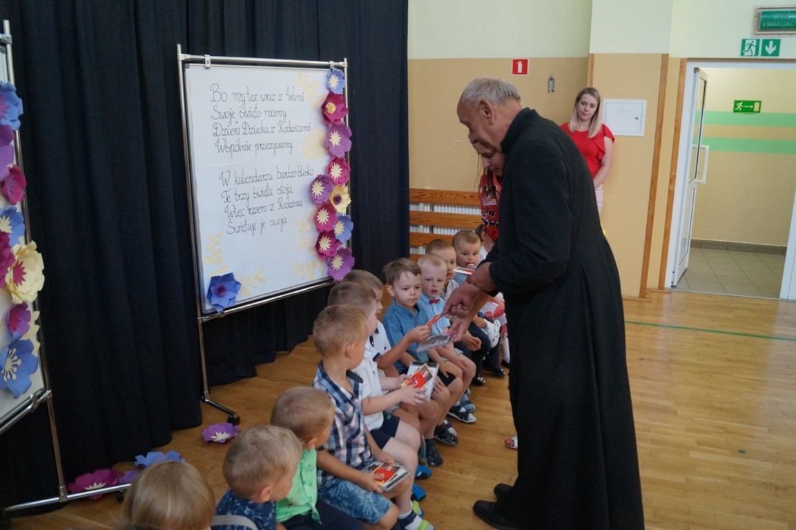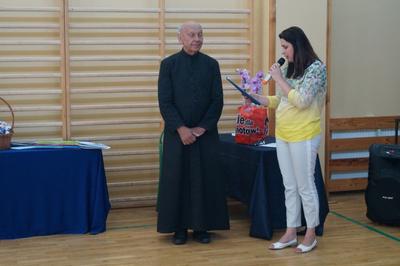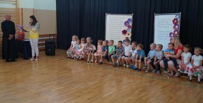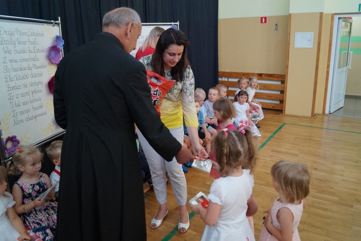Po części artystycznej pani kierownik razem z dziećmi podziękowała za wieloletnią współpracę księdzu kan. Franciszkowi Kuciowi w związku z odejściem na emeryturę.
