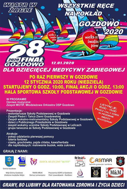 W niedzielę 12 stycznia br. po raz pierwszy w Gozdowie zagra Wielka Orkiestra Świątecznej Pomocy. Serdecznie zapraszamy!!!Wszystkie ręce na pokład!!!