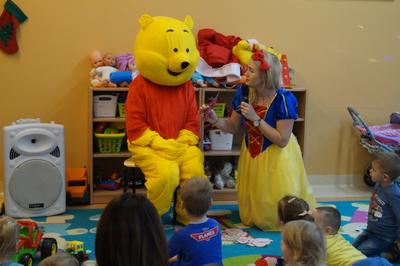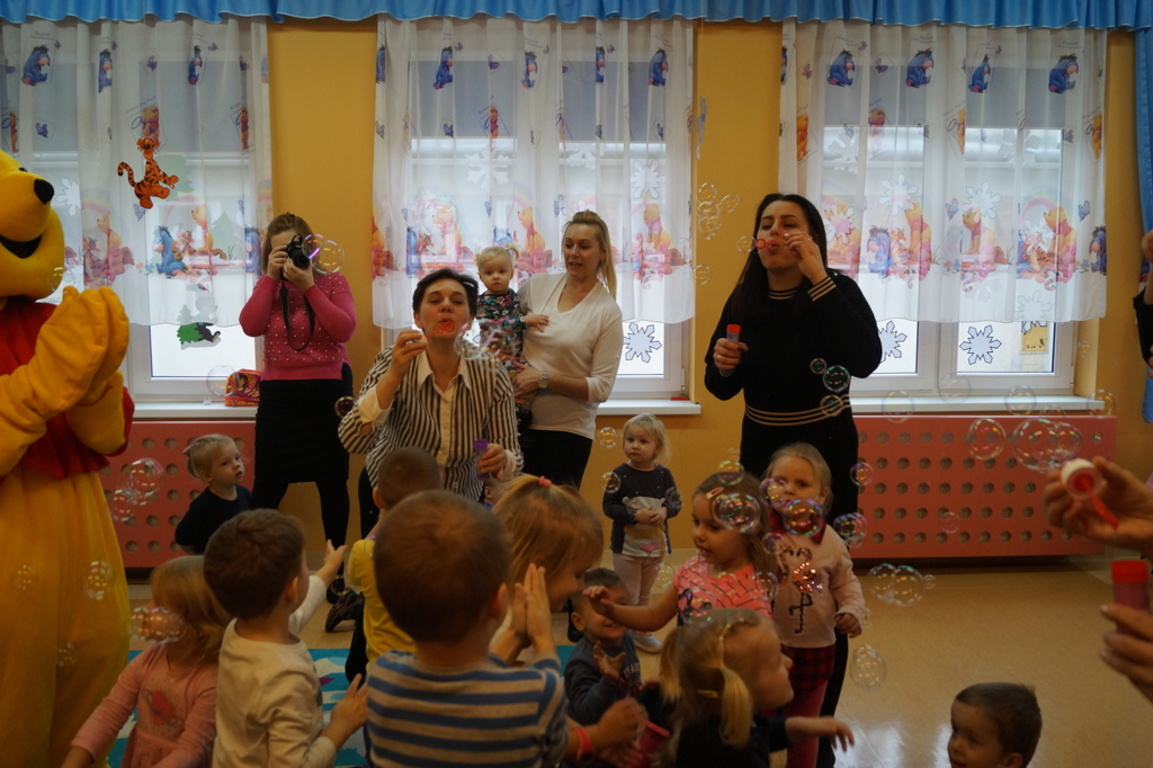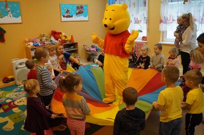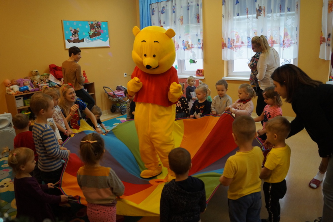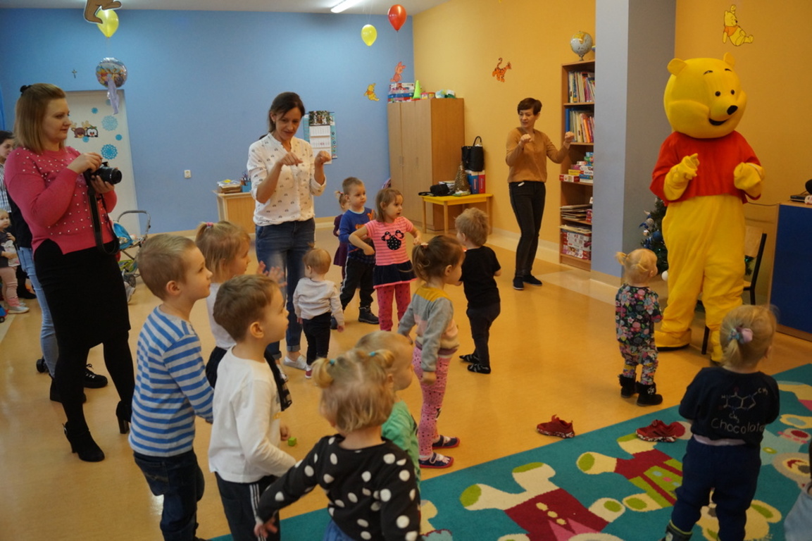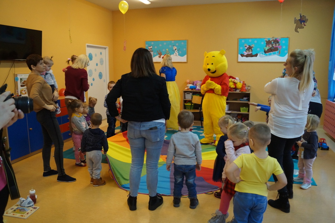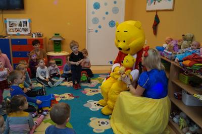 20.01.2020. po raz pierwszy zorganizowałyśmy w naszym Klubie Międzyklubowy-Międzynarodowy Dzień Kubusia Puchatka na który zaprosiłyśmy dzieci wraz z opiekunkami z Klubu Dziecięcego „Radosna Kraina” z Gozdowa, które przyjechały do nas gminnym autokarem, aby razem z nami świętować.