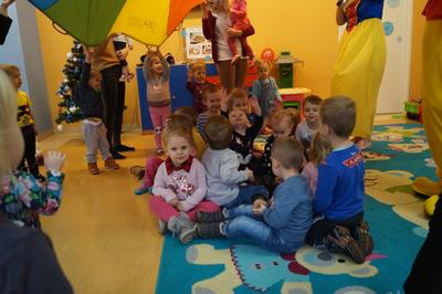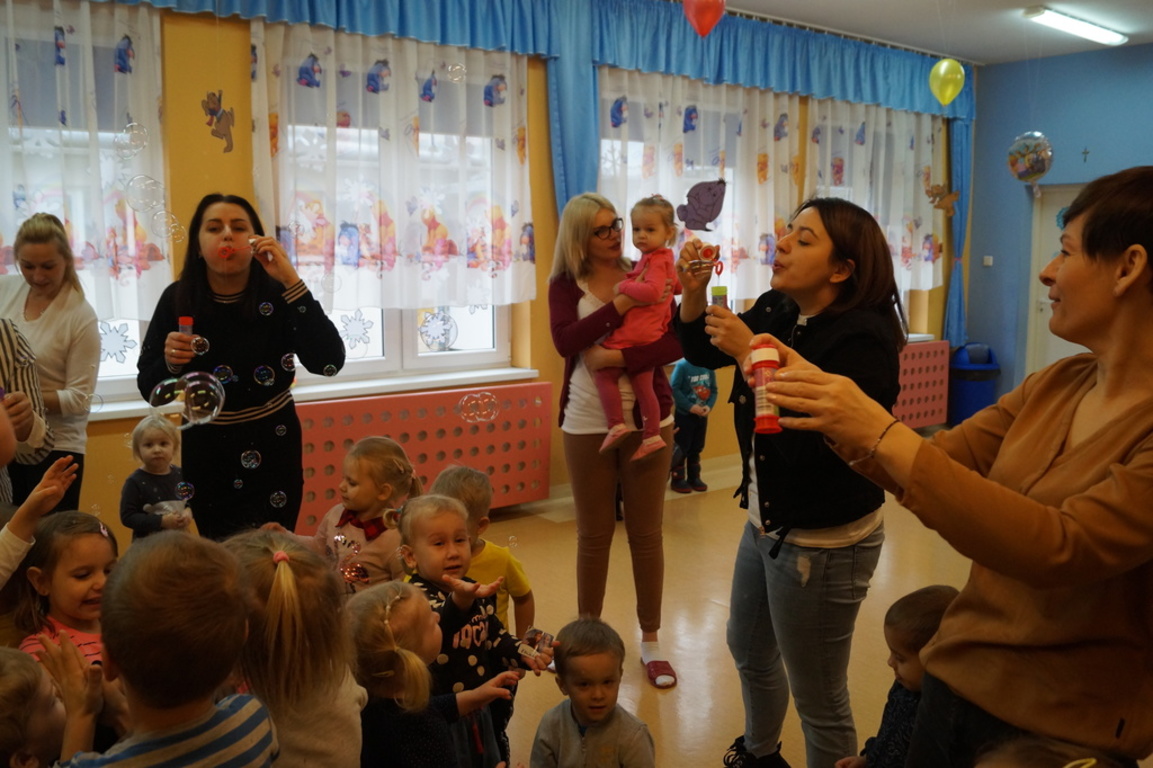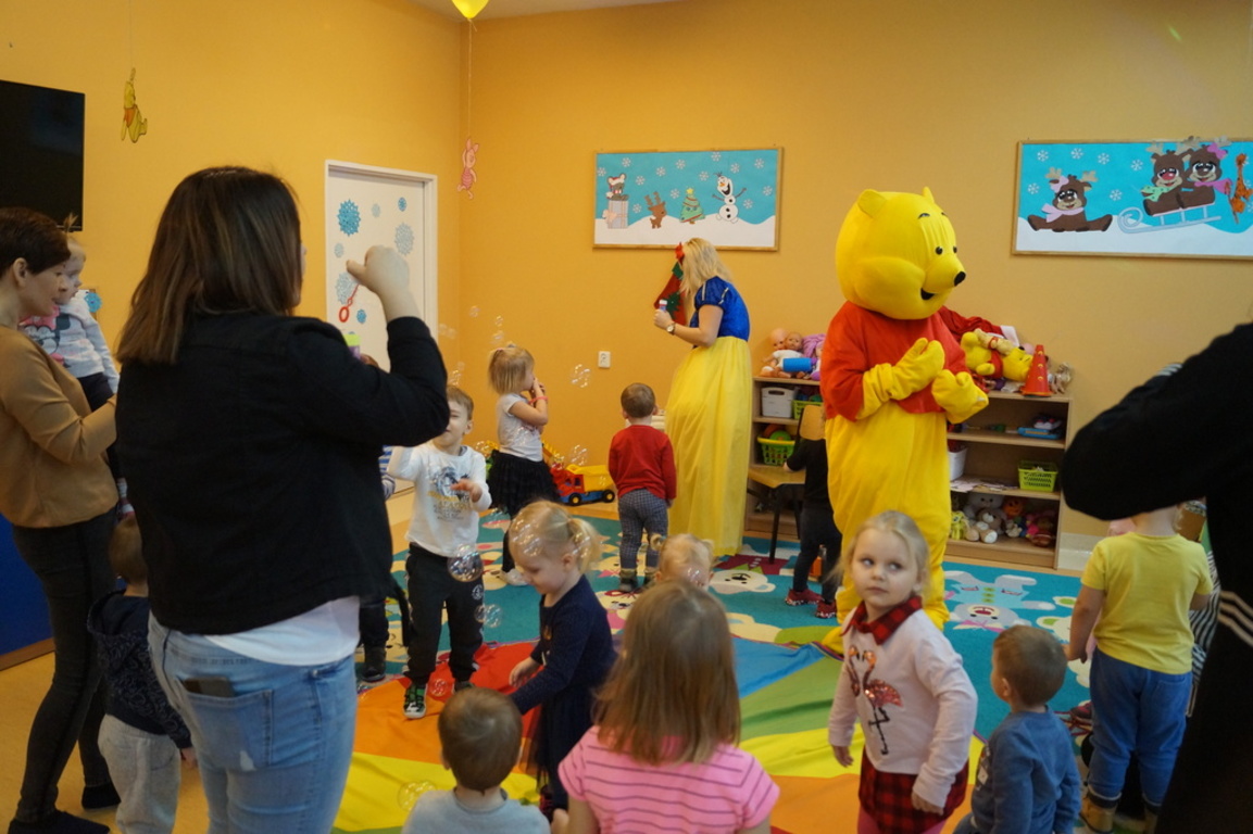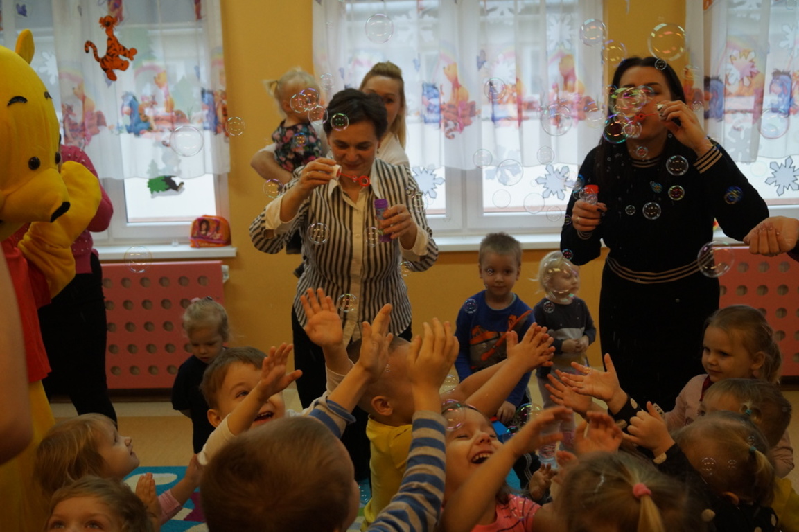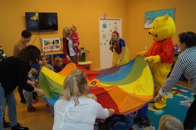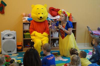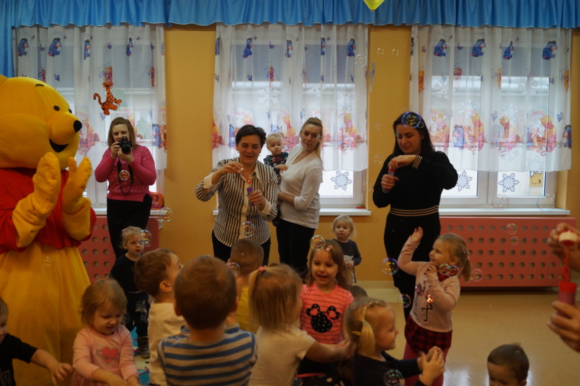 20.01.2020. po raz pierwszy zorganizowałyśmy w naszym Klubie Międzyklubowy-Międzynarodowy Dzień Kubusia Puchatka na który zaprosiłyśmy dzieci wraz z opiekunkami z Klubu Dziecięcego „Radosna Kraina” z Gozdowa, które przyjechały do nas gminnym autokarem, aby razem z nami świętować.
