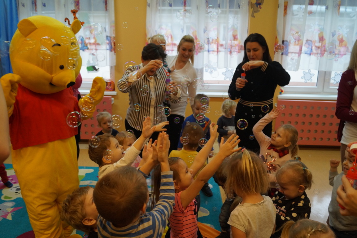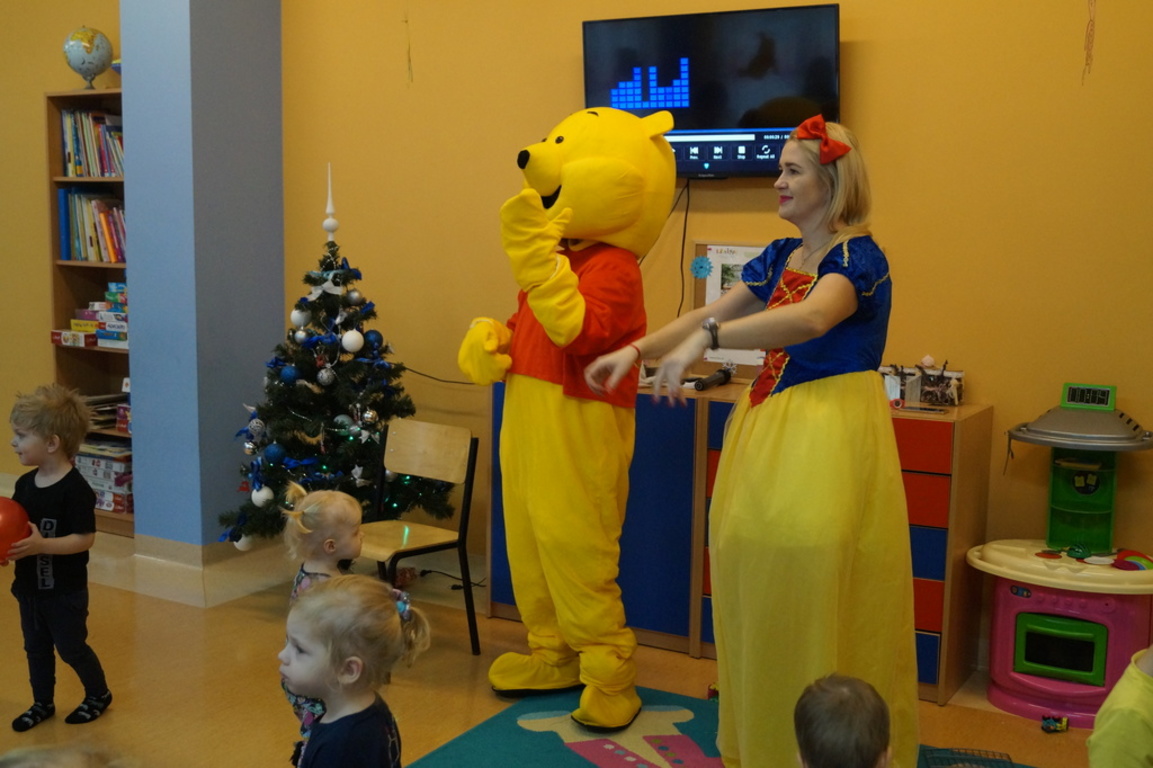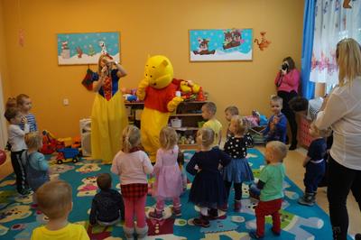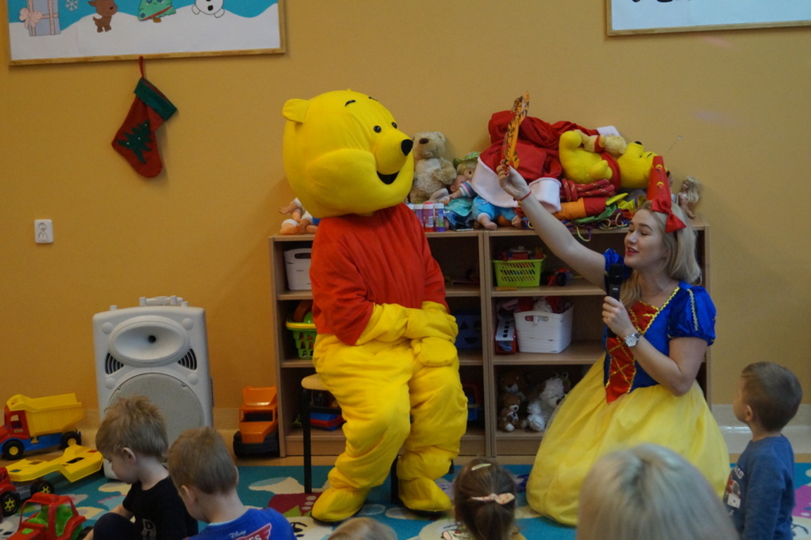 Cała impreza nie odbyłaby się gdyby nie ogromne wsparcie Wójta Gminy Gozdowo- Pana Dariusza Kalkowskiego, który również tego dnia był z nami i obdarował dzieci upominkami. W tym wyjątkowym dniu nie mogło zabraknąć bohatera uroczystości- Kubusia Puchatka, który przybył do nas w towarzystwie Królewny Śnieżki, aby razem z dziećmi tańczyć, śpiewać i dobrze się bawić. Po pełnej wrażeń imprezce, dzieci udały się na poczęstunek, by nabrać sił do dalszej zabawy. Jednakże nadszedł czas, kiedy to z przykrością musieliśmy pożegnać bohaterów naszego święta oraz dzieci z Klubu z Gozdowa. Ten dzień zostanie na długo w pamięci dzieci.