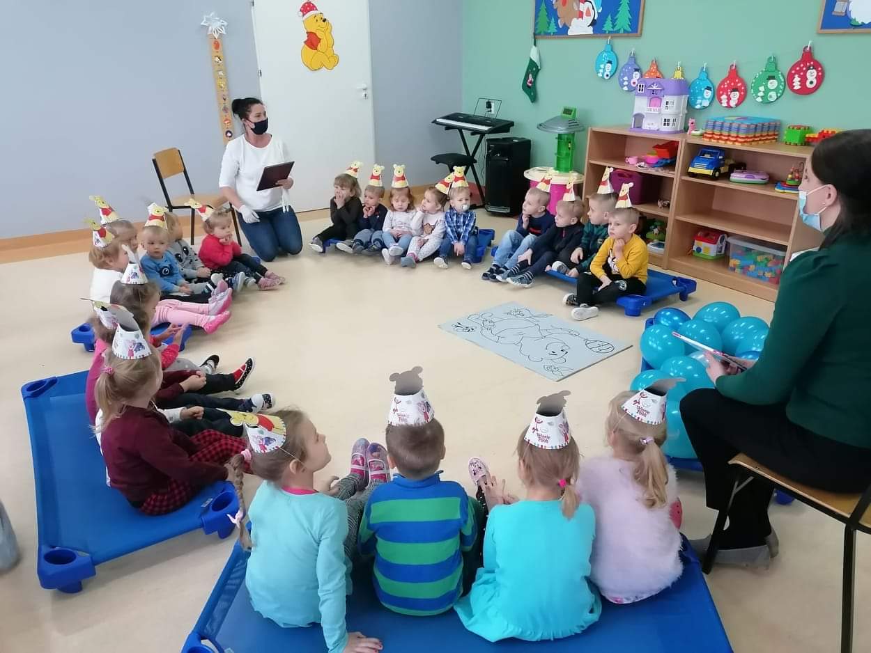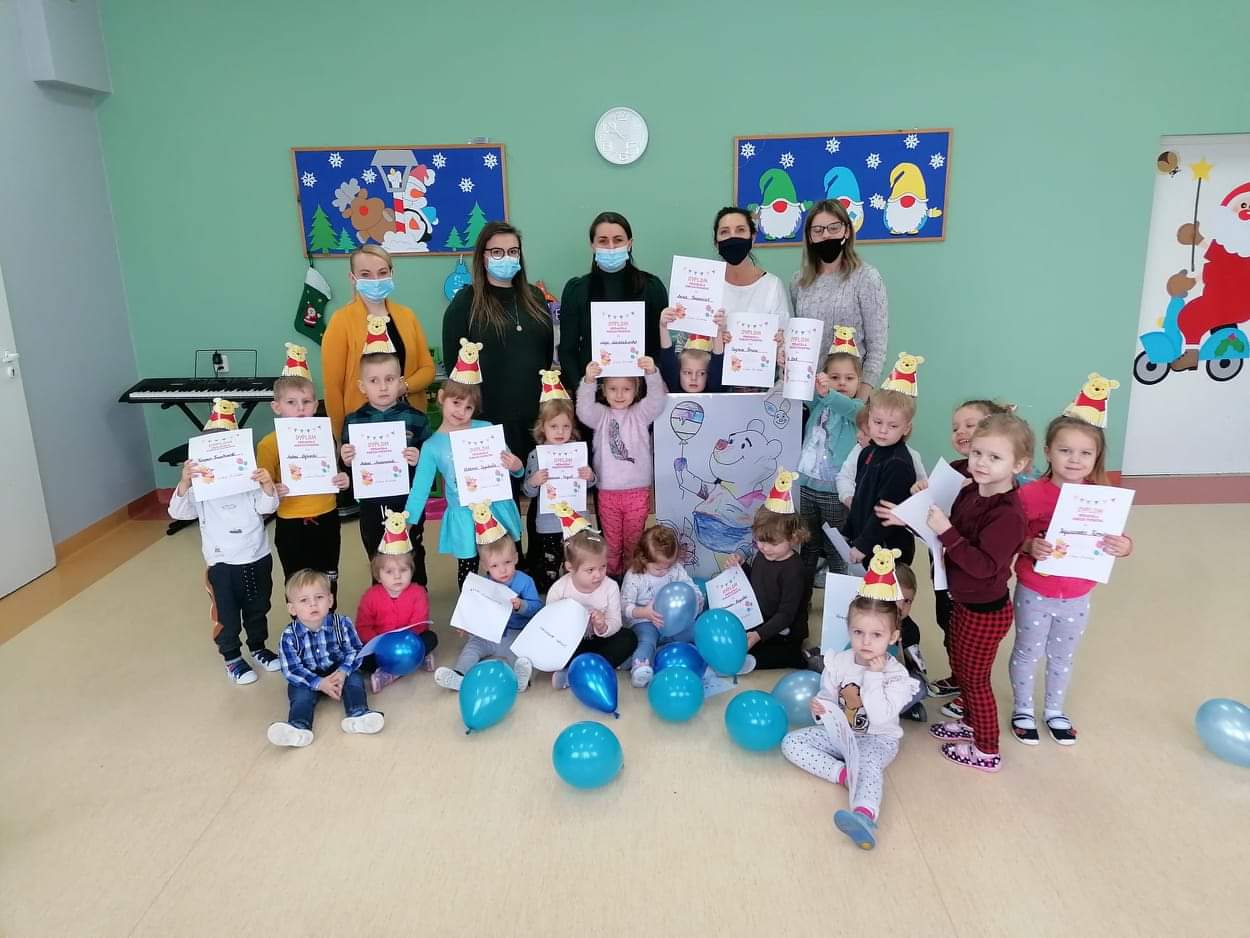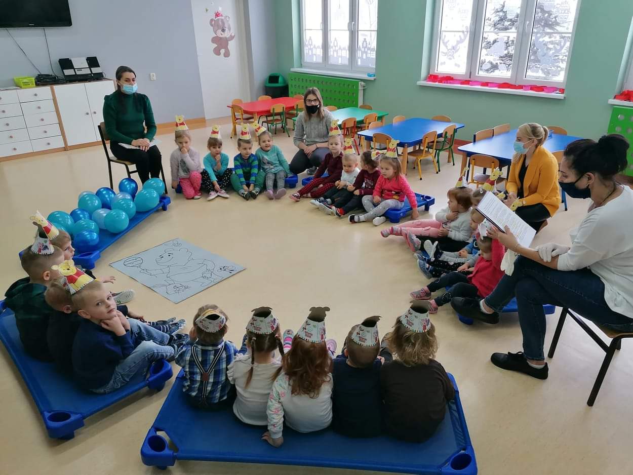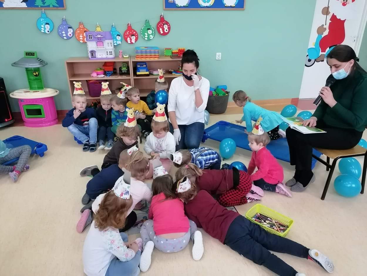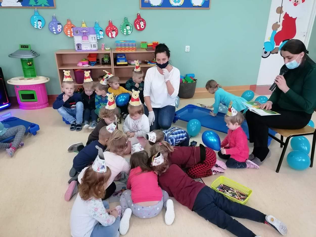 Klub Dziecięcy "Kubusiowy Raj" w Lelicach z ogromną przyjemnością przyjął zaproszenie, aby wziąć udział w Międzynarodowym Dniu Kubusia Puchatka, zorganizowanym przez Gminną Biblioteką Publiczną w Gozdowie z filią w Lelicach. 18 stycznia pani Kasia z zachowaniem wszelkich środków ostrożności, odwiedziła Klub Dziecięcy w Lelicach, gdzie przeprowadziła z dziećmi "podróż" po Stumilowym Lesie, która wywołała na twarzach dzieci wiele uśmiechu. Podczas czytania przez panią kierownik Klubu Dziecięcego bajki o nowym przyjacielu Kubusia, dzieci pięknie pokolorowały portret Kubusia Puchatka. Na zakończenie spotkania pani Kasia wręczyła wszystkim dzieciom dyplomy Przyjaciela Kubusia Puchatka.