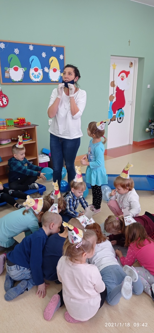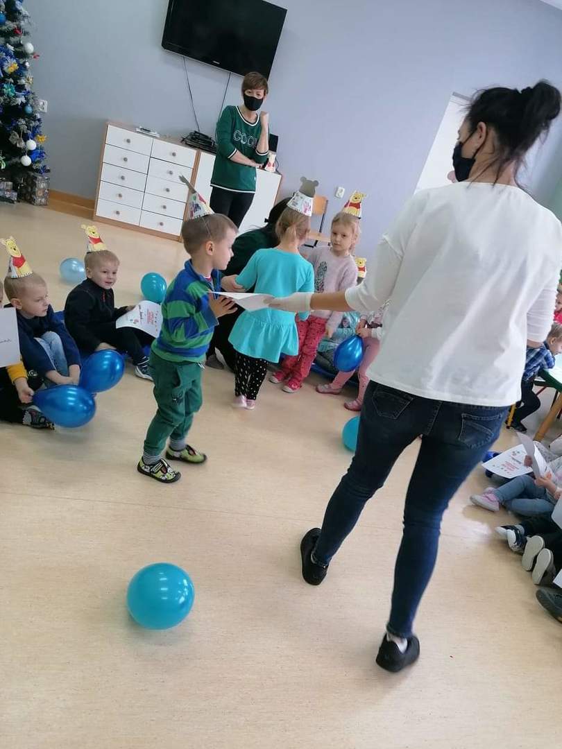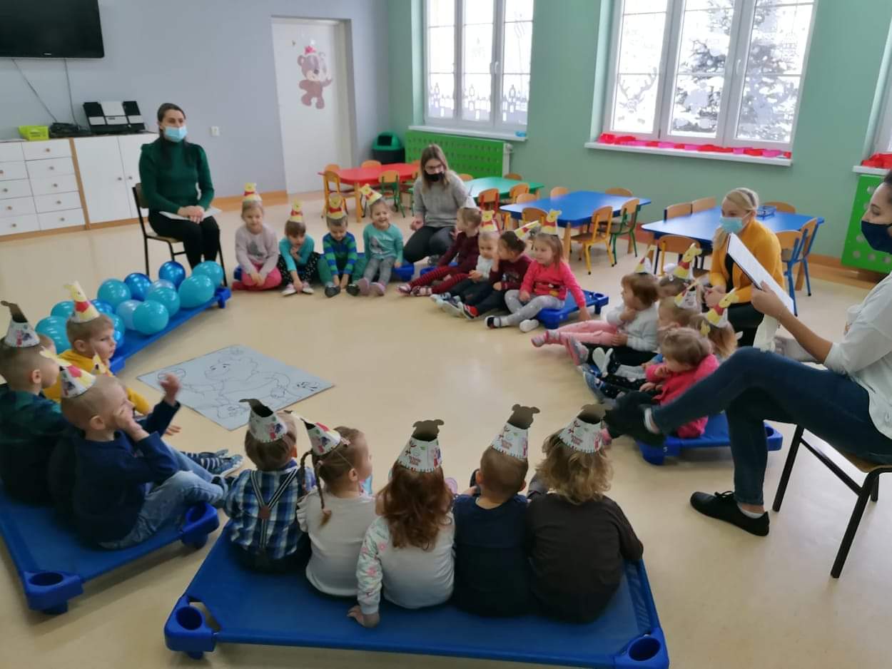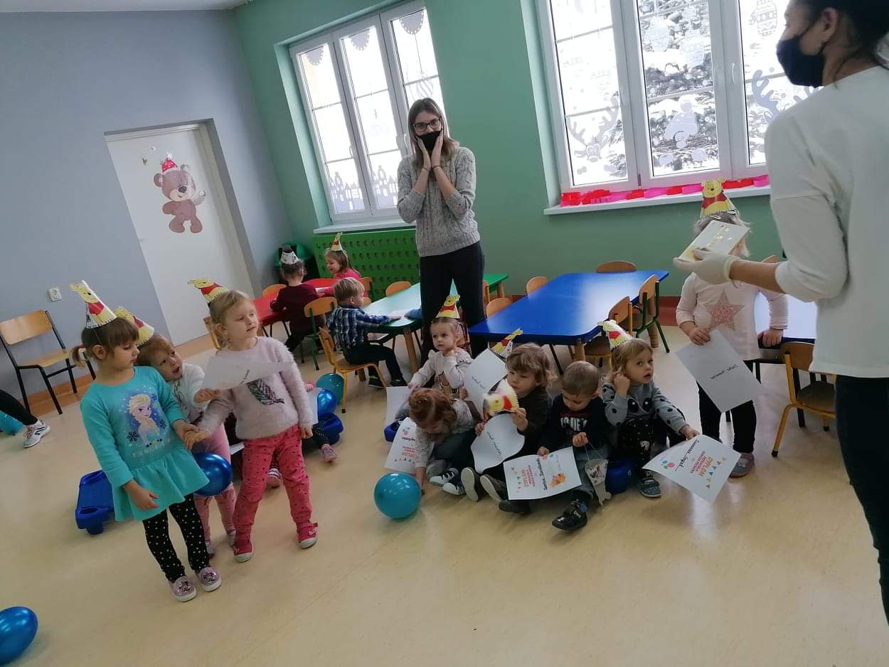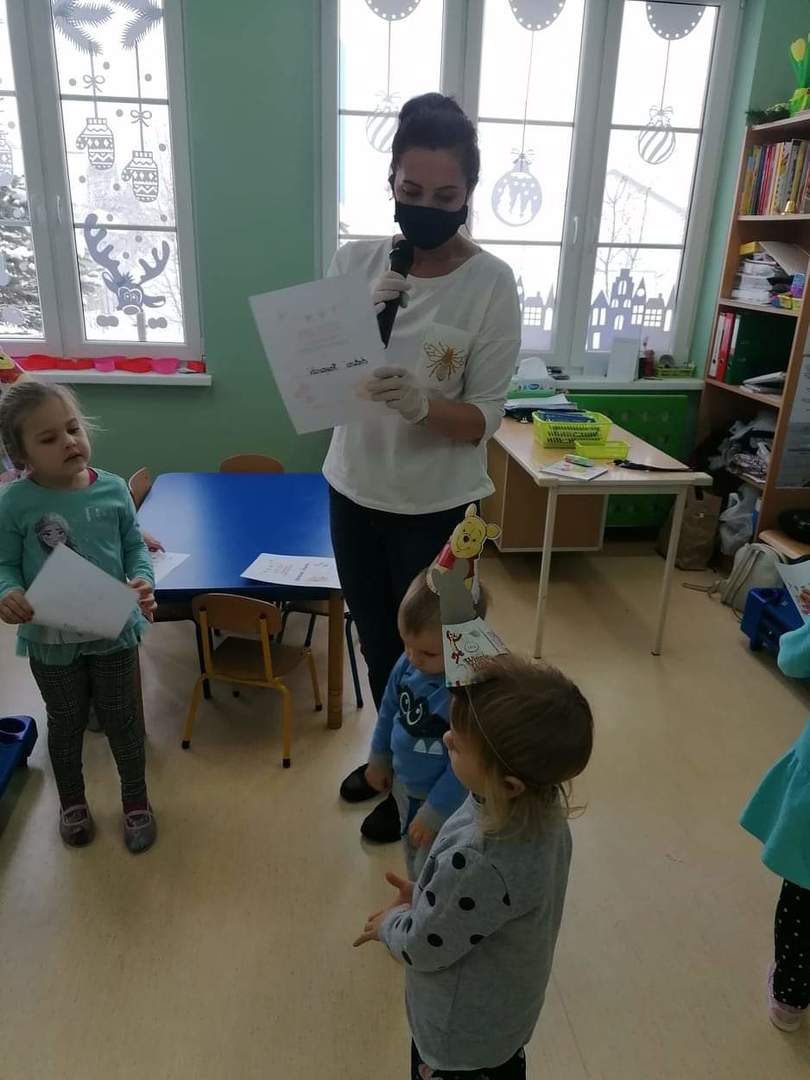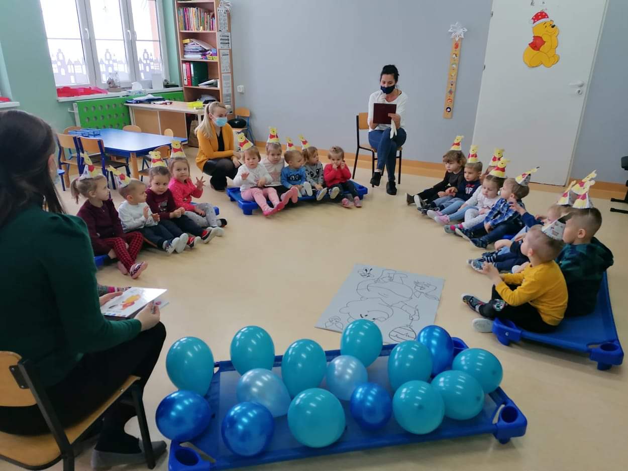 Klub Dziecięcy "Kubusiowy Raj" w Lelicach z ogromną przyjemnością przyjął zaproszenie, aby wziąć udział w Międzynarodowym Dniu Kubusia Puchatka, zorganizowanym przez Gminną Biblioteką Publiczną w Gozdowie z filią w Lelicach. 18 stycznia pani Kasia z zachowaniem wszelkich środków ostrożności, odwiedziła Klub Dziecięcy w Lelicach, gdzie przeprowadziła z dziećmi "podróż" po Stumilowym Lesie, która wywołała na twarzach dzieci wiele uśmiechu. Podczas czytania przez panią kierownik Klubu Dziecięcego bajki o nowym przyjacielu Kubusia, dzieci pięknie pokolorowały portret Kubusia Puchatka. Na zakończenie spotkania pani Kasia wręczyła wszystkim dzieciom dyplomy Przyjaciela Kubusia Puchatka.