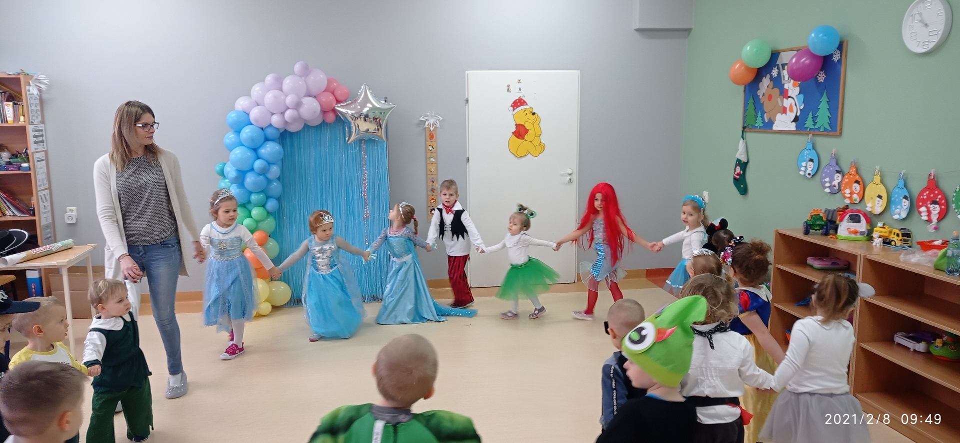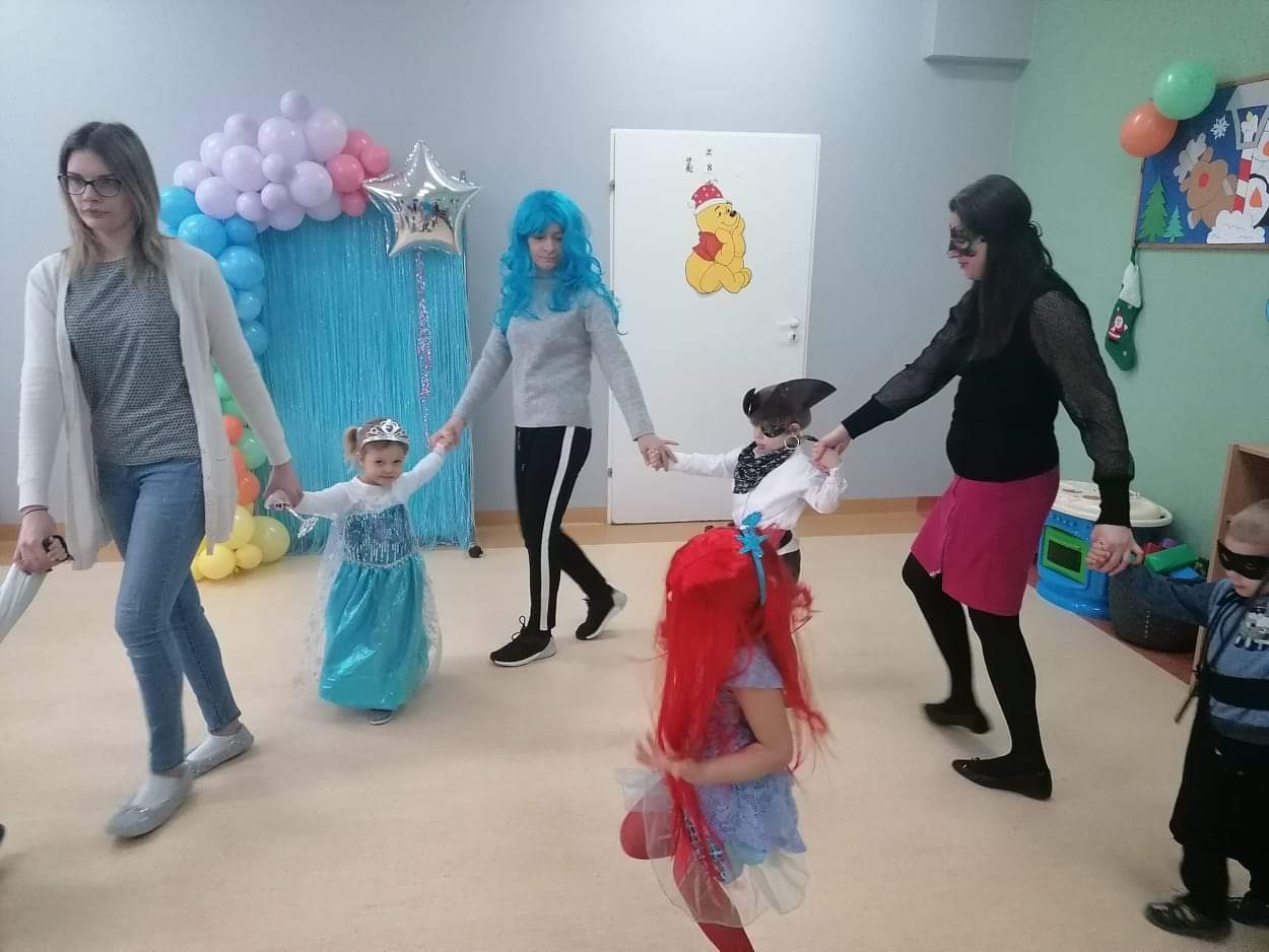 Karnawał to czas balów i zabaw również dla naszych podopiecznych. Zgodnie z tą tradycją w dniu 8 lutego 2021r. w naszym Klubie Dziecięcym „Kubusiowy Raj” w Lelicach odbył się kolejny bal karnawałowy, na który od dawna z niecierpliwością czekały dzieci. Na czas zabawy dziewczynki oraz chłopcy zamienili się w bohaterów z bajkowego świata. Dzieci z radością prezentowały bajeczne stroje, uczestnicząc w tańcach oraz zabawach. Nie mogło zabraknąć również sesji zdjęciowej na tle kolorowej ścianki z balonami. Panie przygotowały również dla dzieci smaczne tosty oraz słodkie przekąski. Dziękujemy rodzicom za przygotowanie ślicznych stroi dla swoich pociech. Bal karnawałowy dostarczył wszystkim dzieciom wiele radości i niezapomnianych wspomnień. Jak dobrze, że kolejny taki bal już za rok :)