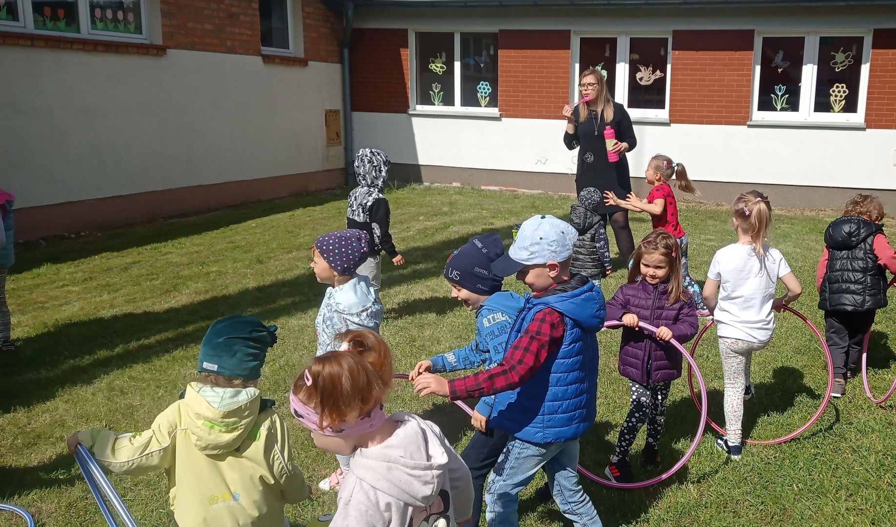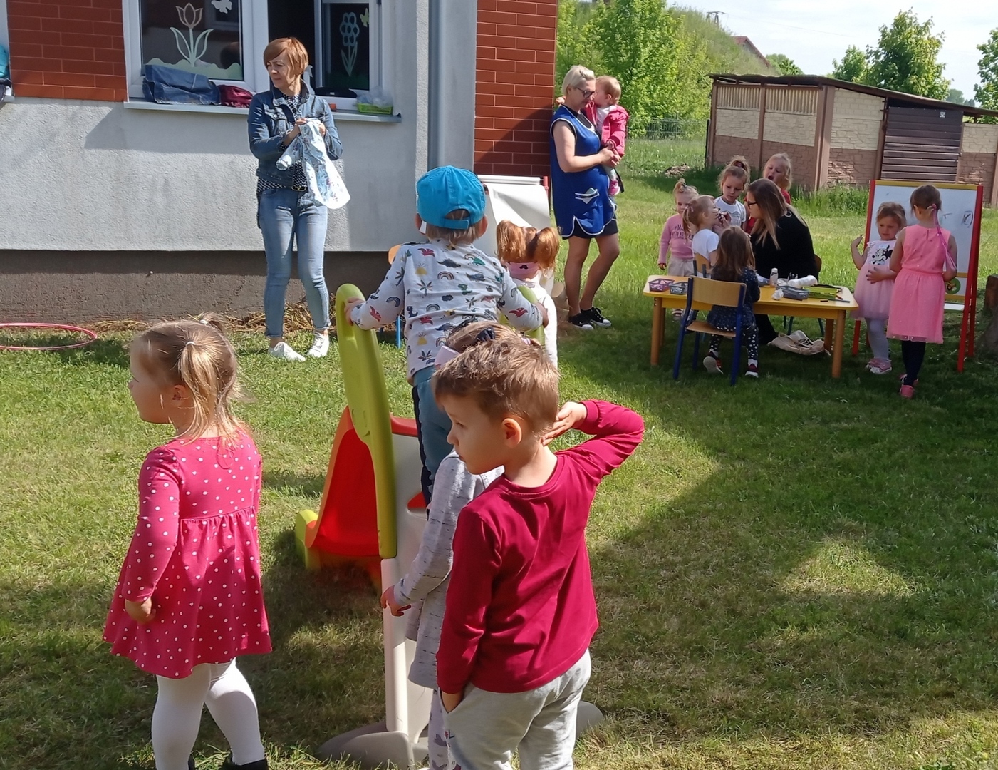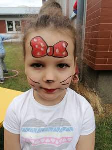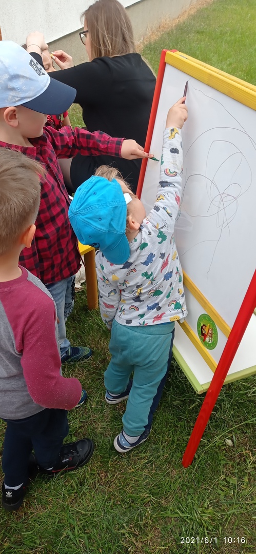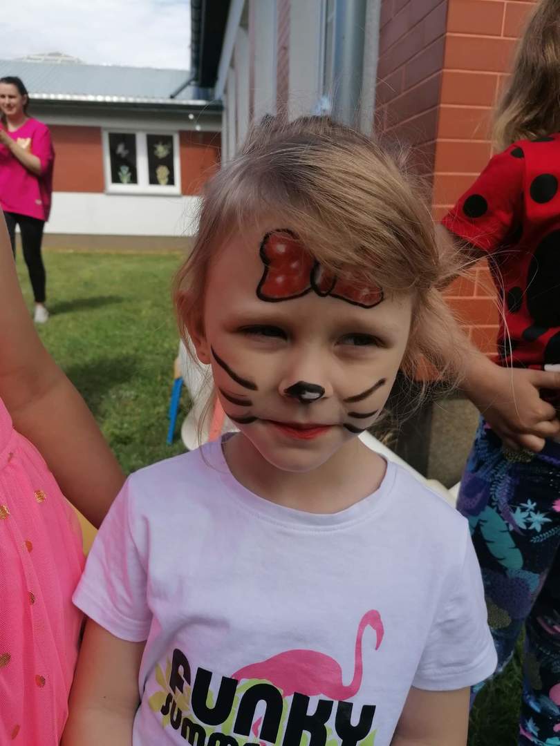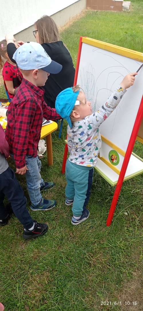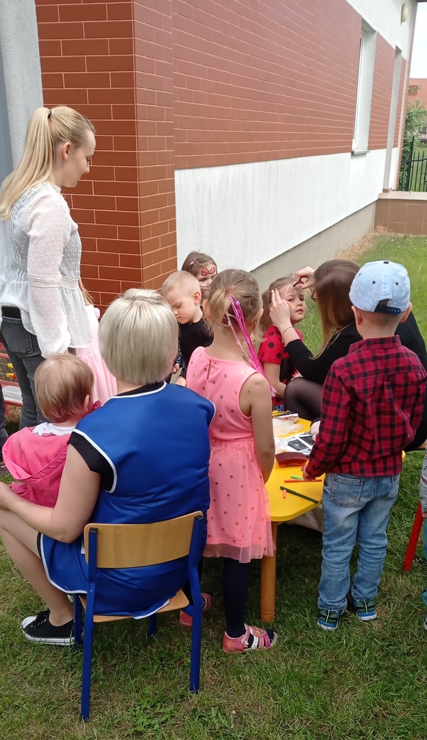 Zatem 1 czerwca, dzięki sprzyjającej pogodzie mogliśmy zorganizować Dzień Dziecka na świeżym powietrzu, gdzie na dzieci czekały zabawy, bańki mydlane, balony. Towarzyszące temu okrzyki radości na pewno świadczyły o dobrej zabawie. Nie mogło zabraknąć również świetnej atrakcji- malowania twarzy dzieciom, dzięki czemu mogły zmienić się choć na chwilę w ulubioną postać z bajki czy zwierzątko. Nie obyło się bez obchodów tego dnia bez słodkiego poczęstunku jak również uwielbianych przez dzieci frytek :)