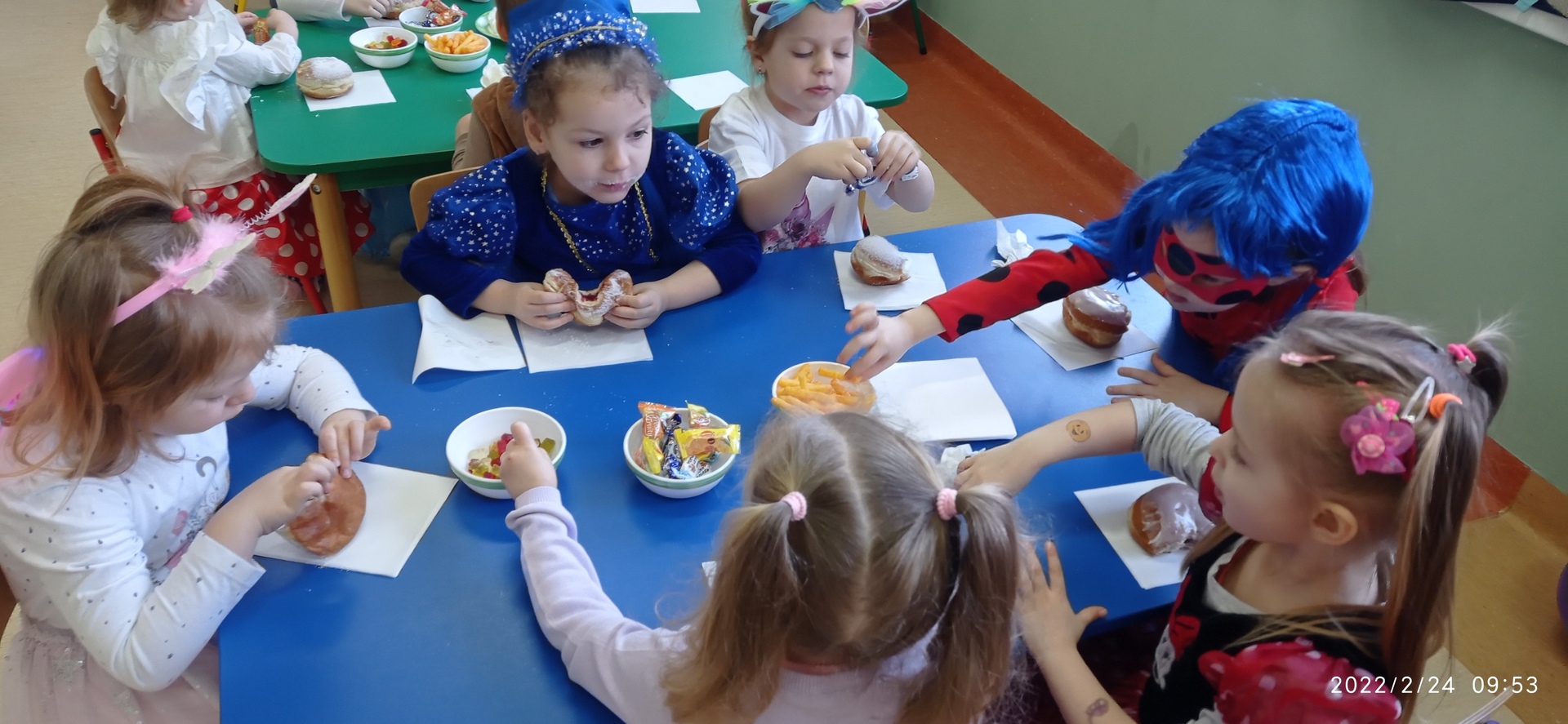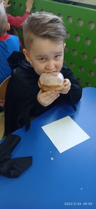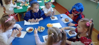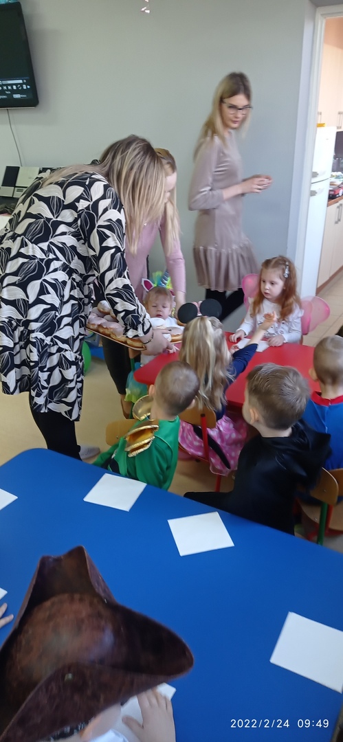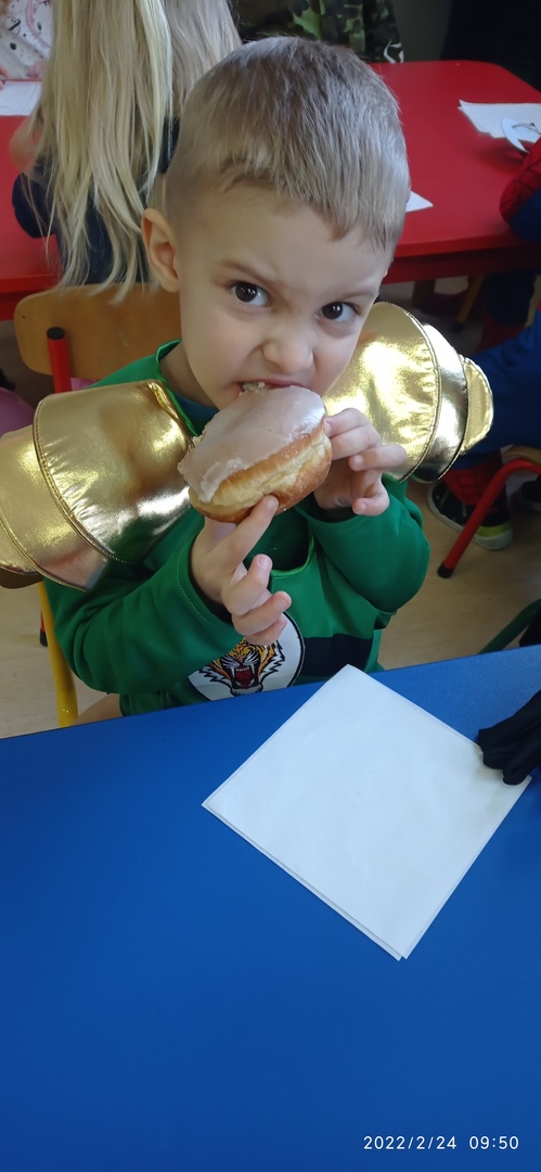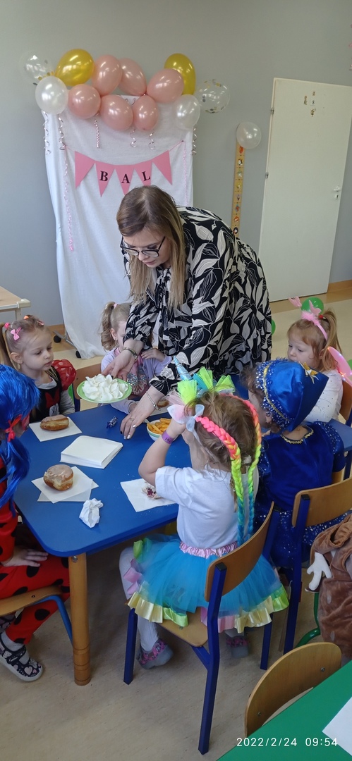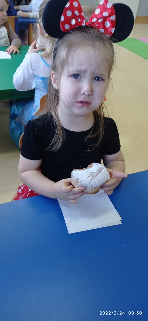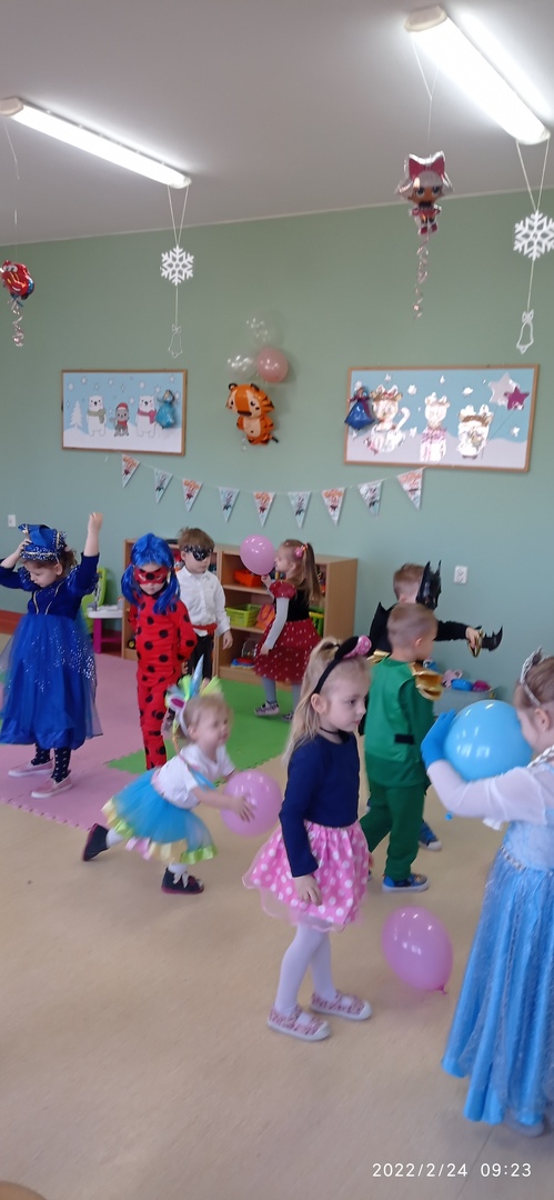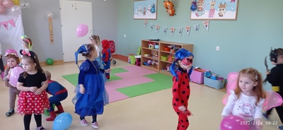 Karnawał to czas uczt i zabaw. Najhuczniej i najweselej obchodzimy „Ostatki” - ostatki dzień karnawału, a przede wszystkim Tłusty Czwartek. W dniu 24.02.2022r. w naszym Klubie odbył się długo wyczekiwany bal karnawałowy - niezwykłe wydarzenie. Po śniadaniu w naszej sali pojawiały się kolorowe postacie. Nie sposób zliczyć i wymienić tych wszystkich postaci. Dzieci świetnie się bawiły uczestnicząc wspólnie ze swoimi paniami w zabawach i pląsach. W sali w czasie tańców było bardzo kolorowo, wszyscy bawili się wesoło, uśmiech nie znikał z twarzy mimo chwilowego zmęczenia. Oczywiście nie odbyło się bez degustacji pysznych pączków w naszym Klubie. Dziękujemy dzieciom i rodzicom za zaangażowanie w przygotowanie pięknych balowych strojów. Kolejny bal karnawałowy już za rok!