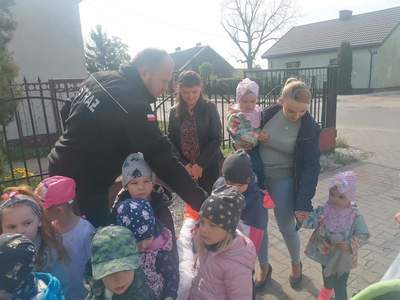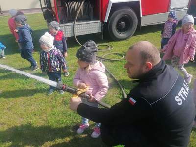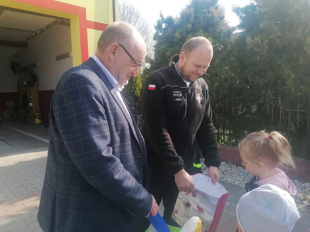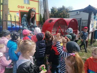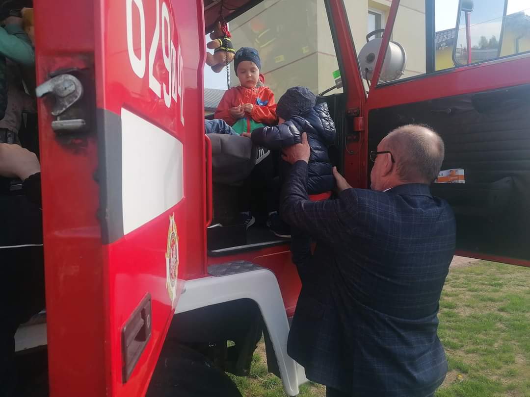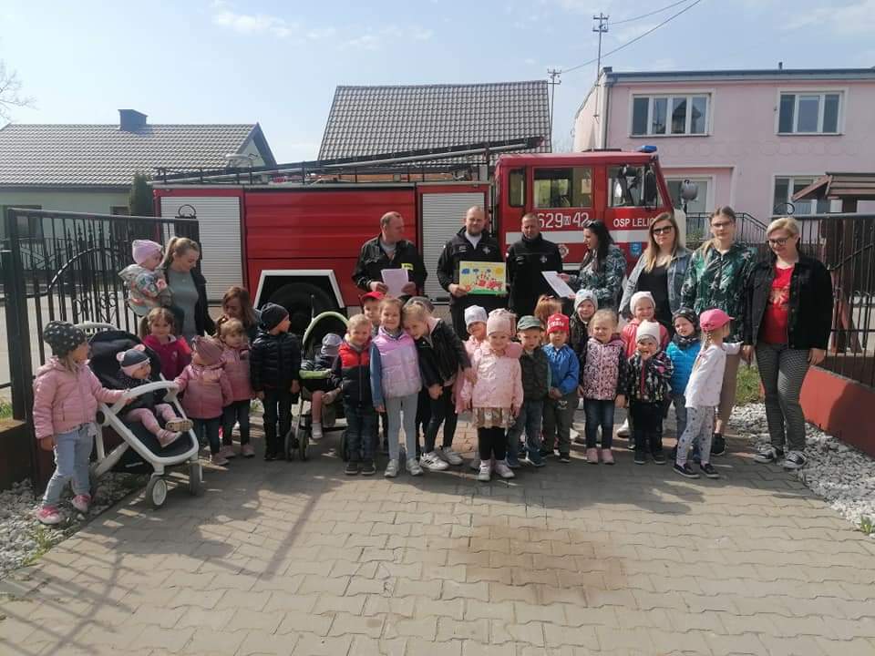 W środę 5 maja dzieci razem z opiekunkami z Klubu Dziecięcego „Kubusiowy Raj” w Lelicach wybrały się w odwiedziny do Strażaków z Ochotniczej Straży Pożarnej w Lelicach. Na miejscu gorące powitanie naszym dzieciom przygotował Wójt Gminy Gozdowo Pan Dariusz Kalkowski, oraz Strażacy OSP Lelice. Na początku spotkania Prezes Dariusz Śmigielski poczęstował dzieci cukierkami. Dzieci podczas tej niecodziennej wizyty mogły zapoznać się z zawodem strażaka, z zasadami postępowania na wypadek powstania pożaru lub innego zagrożenia. Strażacy bardzo ciekawie opowiadali o swojej pracy. Dzieci dowiedziały się, że strażacy nie tylko gaszą pożary ale również pomagają w czasie powodzi, usuwają skutki wypadków samochodowych, sprzątają połamane przez wichury drzewa. Dzieci z Klubu Dziecięcego w Lelicach miały okazję zobaczyć wóz strażacki wraz z całym wyposażeniem, sprzęt gaśniczy i strój w jaki ubierają się do akcji, a nawet go przymierzyć. Zwiedzały także wszystkie pomieszczenia znajdujące się w remizie. Wizyta w straży pożarnej to doskonała forma edukacyjnego uświadomienia dzieci o zasadach bezpieczeństwa oraz zachowaniu się w przypadku pożaru, wypadku i innych zagrożeń, które mogą mieć miejsce. Strażacy otrzymali od nas piękne laurki, które dla nich zrobiliśmy oraz wręczyliśmy na ręce Prezesa, Dyplom Przyjaciół Dzieci z Klubu Dziecięcego w Lelicach. Serdecznie dziękujemy Strażakom z jednostki Ochotniczej Straży Pożarnej w Lelicach za zorganizowanie spotkania oraz umożliwienie naszym podopiecznym poznanie zawodu Strażaka.